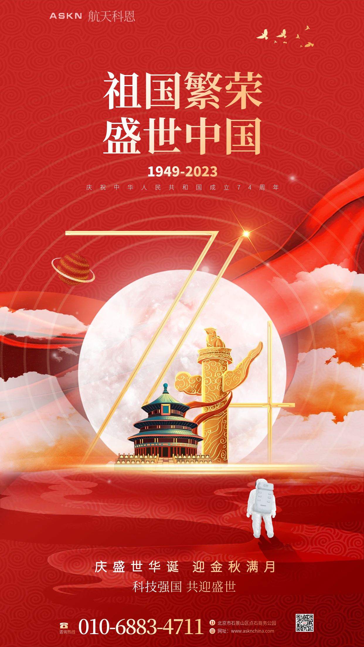 更新時(shí)間:2023-09-28根據(jù)公司安排,國(guó)慶節(jié)和中秋節(jié)的放假通知如下:雙節(jié)長(zhǎng)假:2023年9月29日(星期五)至10月6日(星期五),共8天放假。在這個(gè)特殊的假期里,祝愿大家度過(guò)一個(gè)愉快、安全的假期! 親朋好友聚在一起,共享天倫之樂(lè)。航天科恩全體員工祝福您身體健康,幸福安康!...